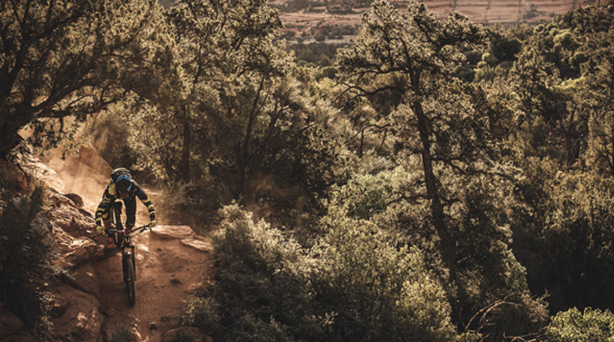 « Je ‘trippe’ pas mal sur les grosses sections techniques. J’ai planifié quelques voyages de vélo cet été dans de nouveaux secteurs, j’aime bien le fait d’avoir la sûreté du débattement d’extra en cas de situations extrêmes »